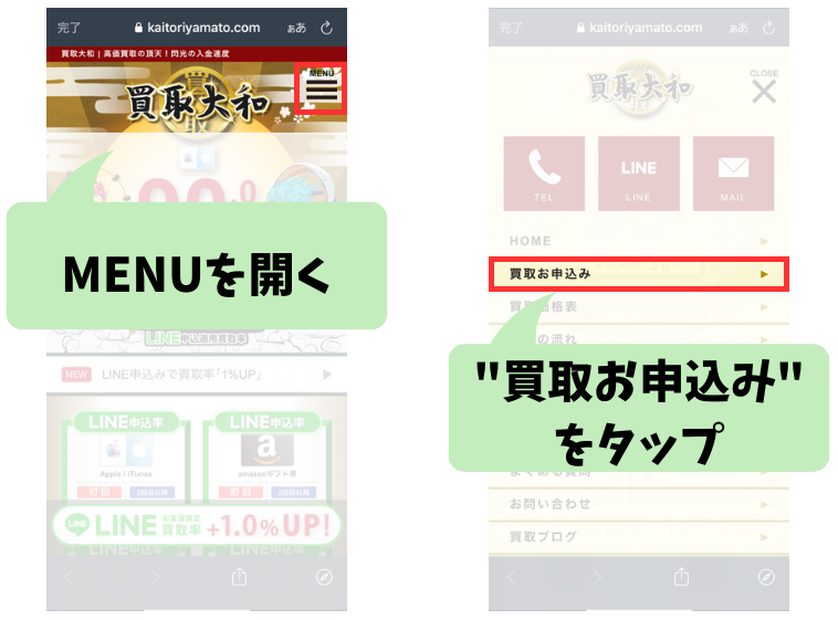 買取大和の公式サイトにある申し込みフォームに進みます。